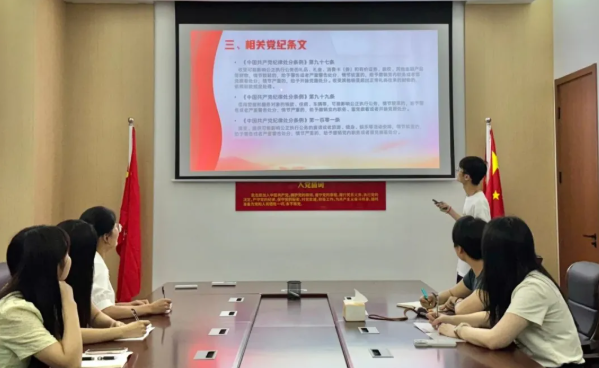 专题组织生活会上,党委聚焦中央八项规定精神开展警示教育党课,结合违规吃喝典型案例通报与实施细则,组织党员开展案例剖析与自查自纠。研讨中深化了对作风建设长期性、复杂性的认识,推动纪律规矩意识内化于心,强化自我革命的政治担当。